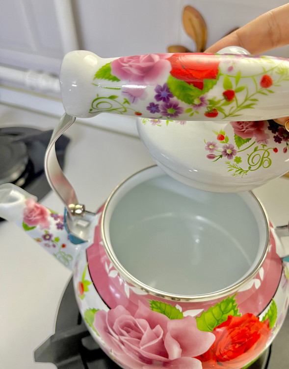 لعاب استفادهشده در این مدل باعث میشود کتری در برابر خط و خش، تغییر رنگ و زنگزدگی مقاوم بماند. طرح گل قرمز روی آن، حس اصالت و زیبایی را منتقل میکند و به فضای آشپزخانه روح میدهد؛ مخصوصاً برای چیدمان آشپزخانههای روستیک، کلاسیک یا حتی دکورهای امروزی با چاشنی سنتی.