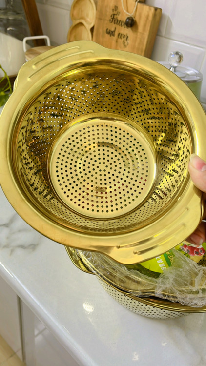 ست سه‌تکه لگن استیل طلایی لیزری با دسته پیوسته وارداتی رنگ ثابت