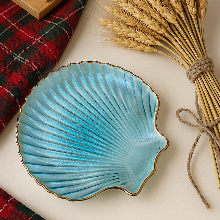 اگر بهدنبال یک ظرف خاص و چشمنواز برای سرو خوراکی یا تزئین میز پذیرایی هستید، ظرف طرح صدف بلور رنگ فیروزهای انتخابی بینظیر برای شماست. طراحی الهامگرفته از فرم طبیعی صدف، این ظرف را به یک قطعه دکوراتیو منحصربهفرد تبدیل کرده که هم کاربردی است و هم زیباییبخش فضای خانهتان.