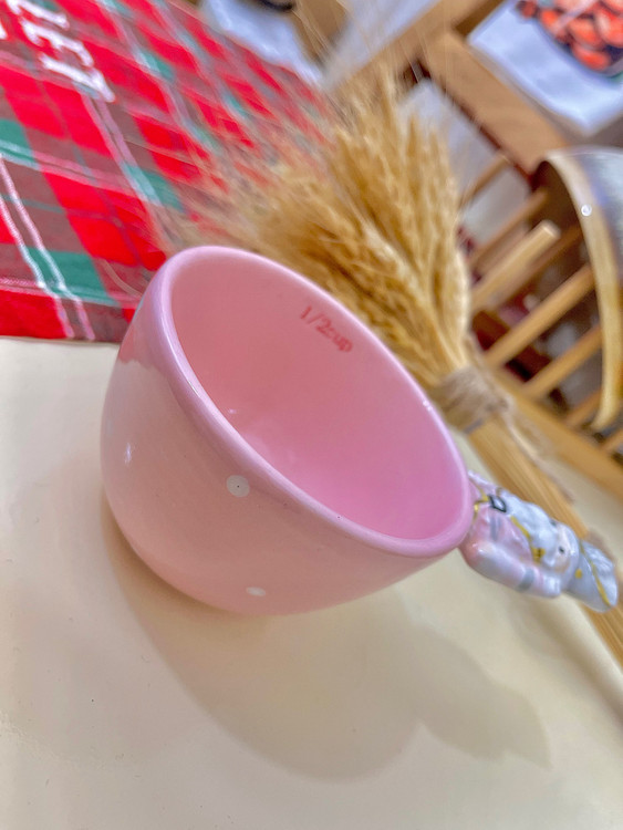 پیمانهی اندازهگیری یک دوم (½ cup) با ترکیب رنگ جذاب صورتی و سفید خالخالی و دستهای منحصربهفرد با طرح پادشاه، انتخابی خاص برای آشپزخانههای فانتزی و خوشسلیقه است. این پیمانه علاوهبر کارایی بالا در اندازهگیری دقیق مواد، جلوهی بصری دلنشینی هم به میز یا قفسهی آشپزخانهتان میدهد.